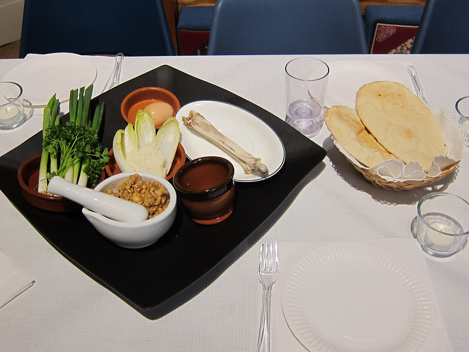The table in church prepared for the Seder meal